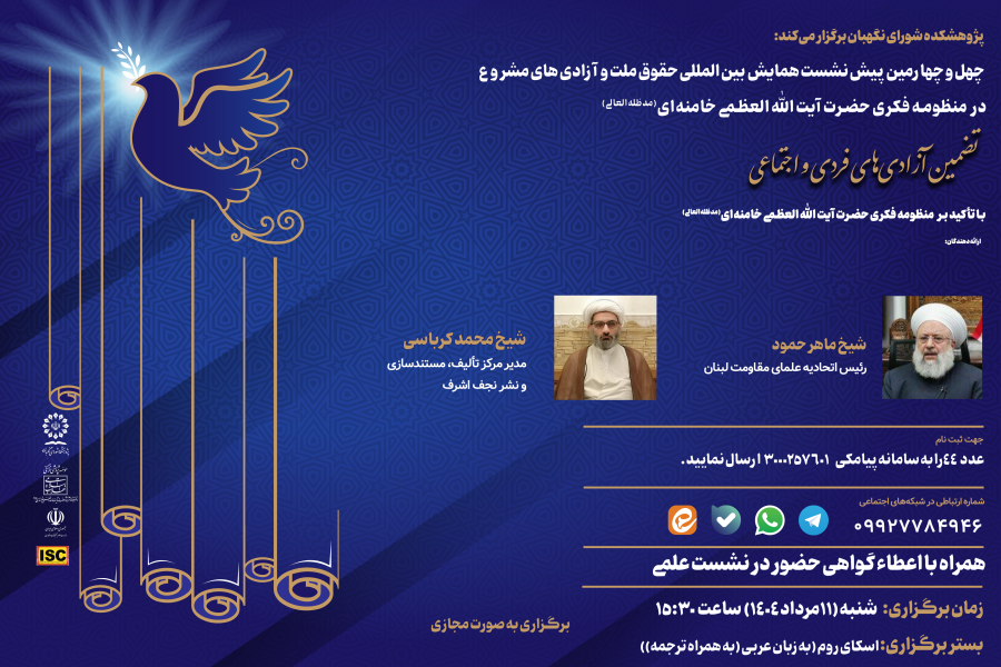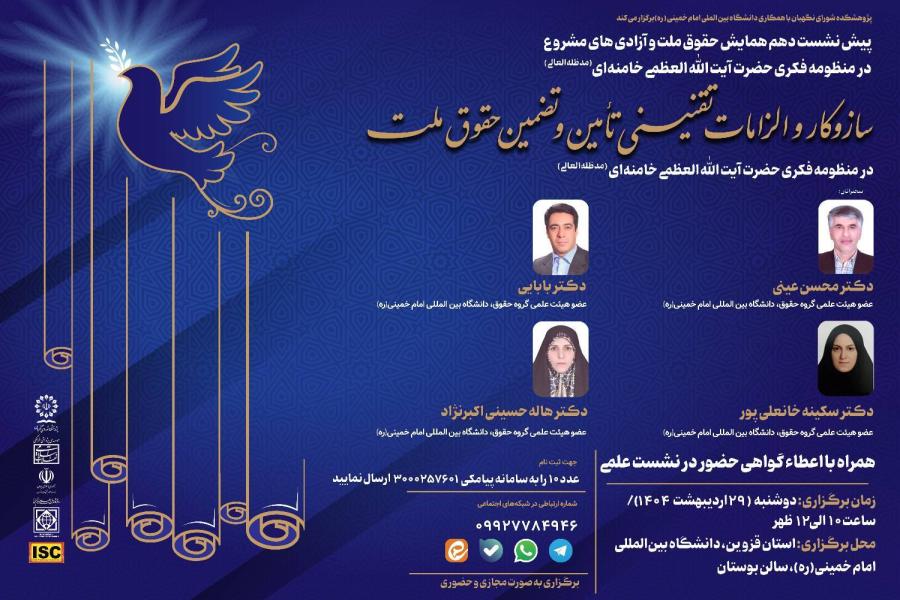 پژوهشکده شورای نگهبان با همکاری دانشگاه بینالمللی امام خمینی(ره) برگزار میکند:پیش نشست دهم همایش حقوق ملت و آزادیهای مشروع در منظومه فکری حضرت آیتاللهالعظمی خامنهای(مدظلهالعالی).jpg)