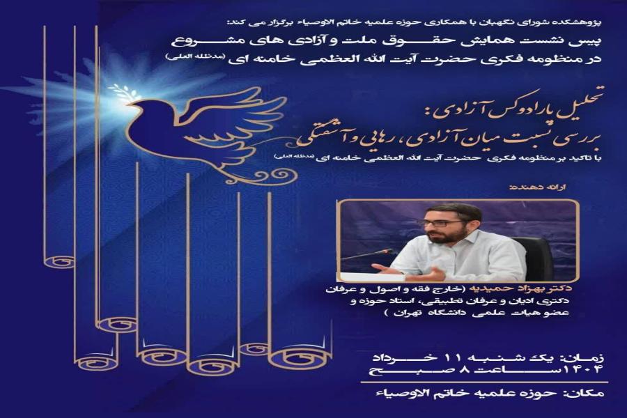 پیش نشست بیست و چهارم همایش بین المللی حقوق ملت و آزادی های مشروع در منظومه فکری حضرت آیت الله العظمی خامنه ای (مدظله العالی) با موضوع: پارادوکس آزادی: بررسی نسبت میان آزادی ، رهایی و آشفتگی
