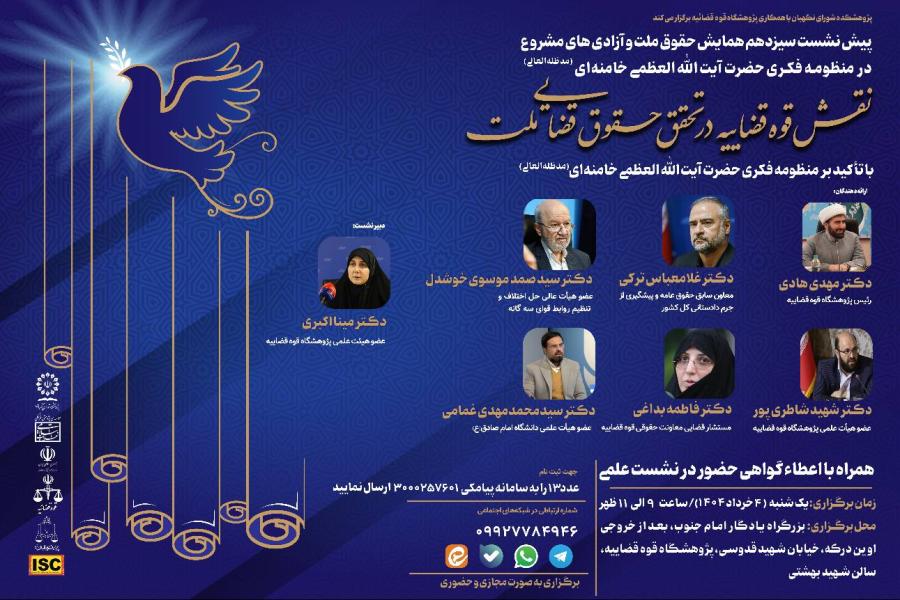 پژوهشکده شورای نگهبان با همکاری پژوهشگاه قوه قضاییه برگزار میکند:پیش نشست سیزدهم همایش حقوق ملت و آزادیهای مشروع در منظومه فکری حضرت آیتاللهالعظمی خامنهای(مدظلهالعالی) با موضوع: نقش قوه قضاییه در تحقق حقوق قضایی ملت؛ با تأکید بر منظومه فکری آیتاللهالعظمی خامنهای ....jpg)